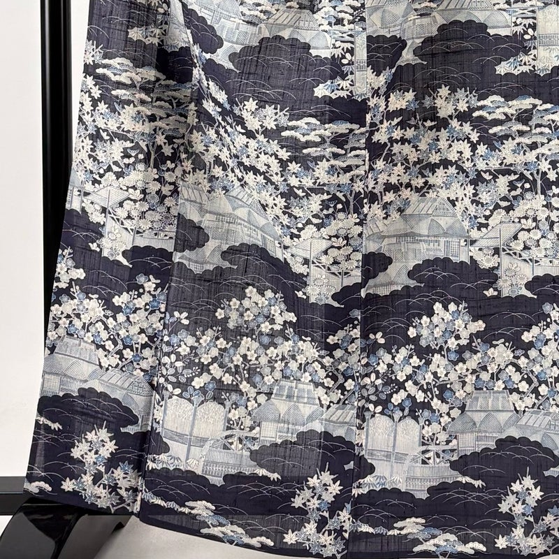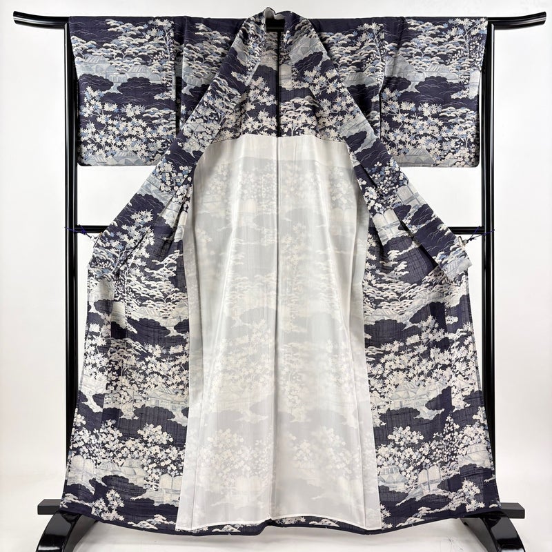 【着物ランク】名品 【素材】正絹 【身丈】約163cm 【裄丈】約65cm 【袖丈】約47.5cm 【袖幅】約33cm 【前幅】約27cm 【後幅】約30.5cm 【サイズ】M 【着物仕立て】単衣 【着用時期】6/9月 【状態ランク】ランクB 【着物着用シーン】気軽なパーティー、観劇、食事会、正月、気軽なお茶会、街着