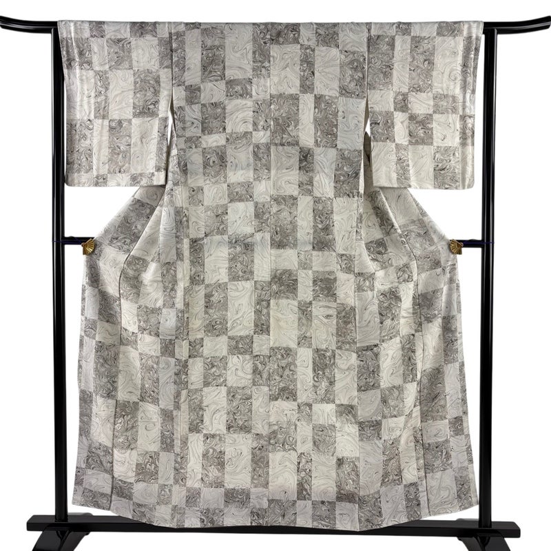 【小紋】 灰色系 灰白 名品 B 約150cm~約159cm 裄丈63cm-64cm (M)size 袖丈50cm-60cm 9990-29990 二万以下
