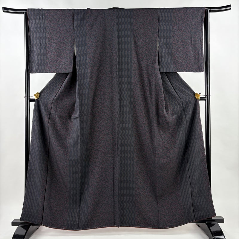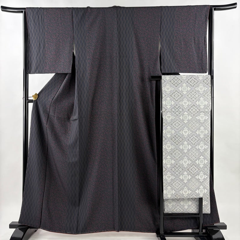 【小紋】 黒系 墨色 秀品 A 約160cm~約169cm 裄丈63cm-64cm (M)size 袖丈48cm 9990-29990 美品 五万以下