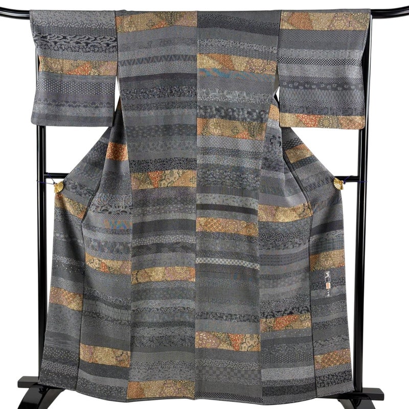 【着物ランク】秀品 【素材】正絹 【身丈】約161.5cm 【裄丈】約67.5cm 【袖丈】約48.5cm 【袖幅】約34cm 【前幅】約22.5cm 【後幅】約28.5cm 【サイズ】L 【着物仕立て】袷 【着用時期】10~5月 【状態ランク】ランクA 【着物着用シーン】気軽なパーティー、観劇、食事会、正月、気軽なお茶会、街着