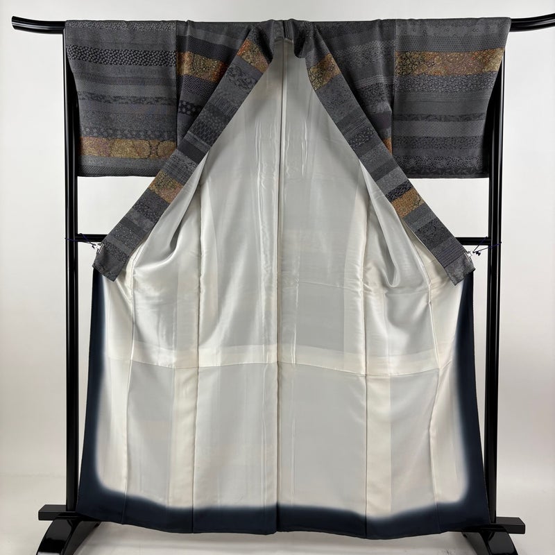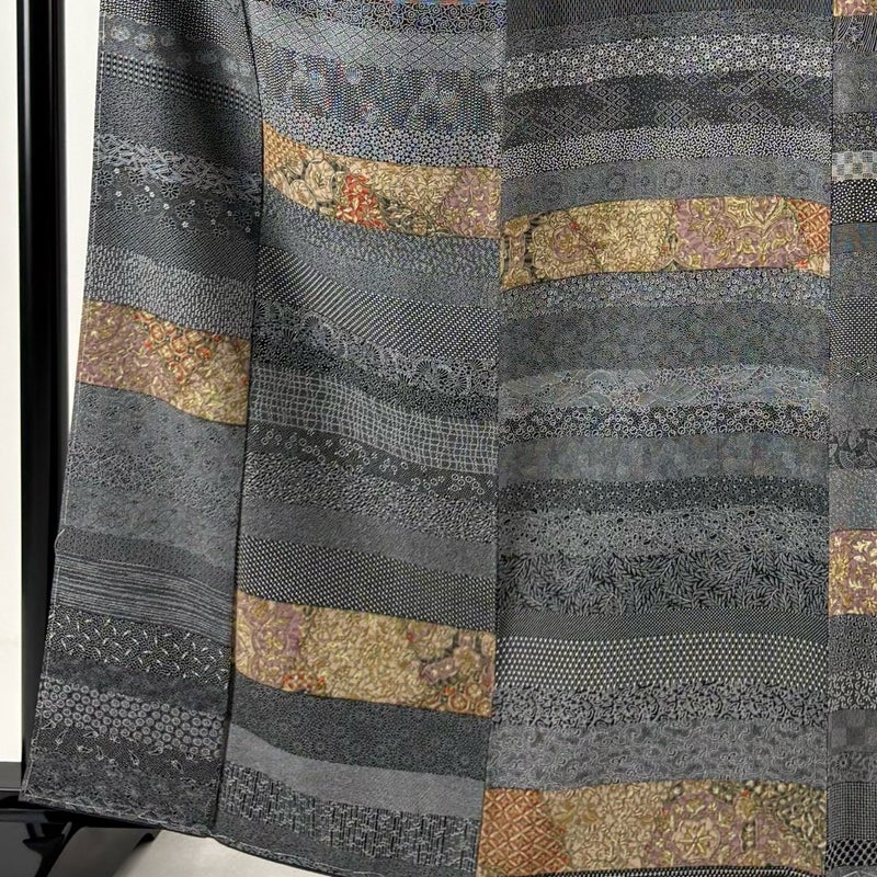 【小紋】 灰色系 黒灰 秀品 A 約160cm~約169cm 裄丈67cm-68cm (L)size 袖丈48cm 7990-9980 美品 二万以下