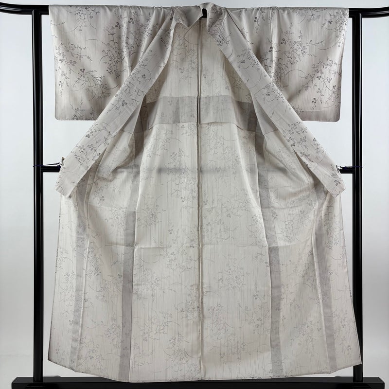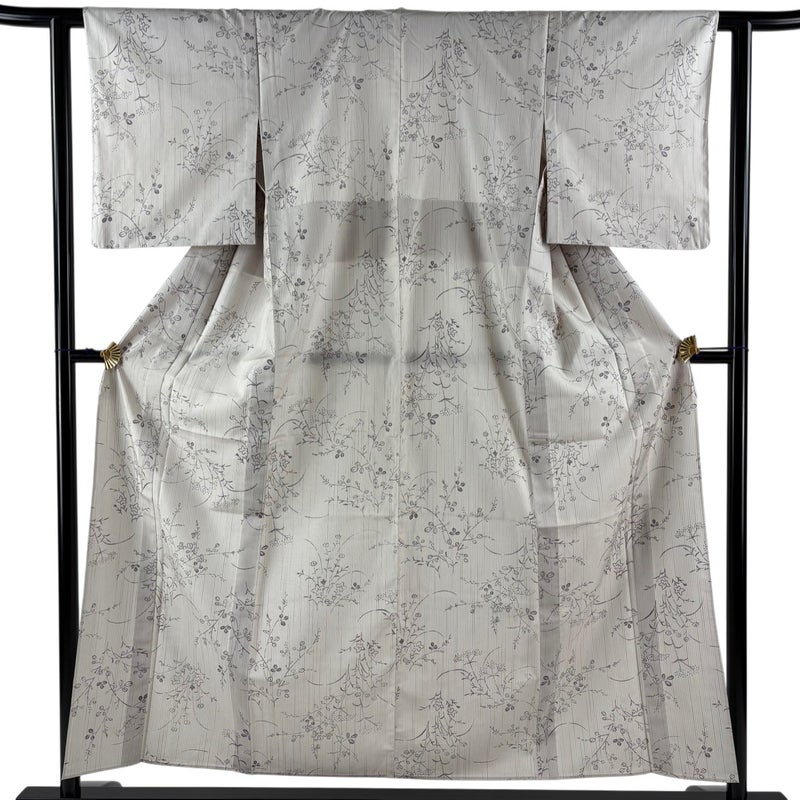 【着物ランク】秀品 【素材】正絹 【身丈】約154.5cm 【裄丈】約60.5cm 【袖丈】約47.5cm 【袖幅】約32cm 【前幅】約23cm 【後幅】約28.5cm 【サイズ】S 【着物仕立て】単衣 【着用時期】6/9月 【状態ランク】ランクA 【着物着用シーン】気軽なパーティー、観劇、食事会、正月、気軽なお茶会、街着