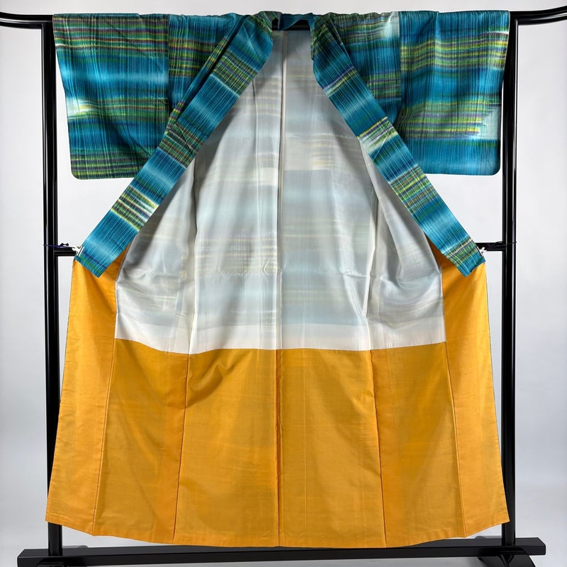 【小紋】 青系 青緑 秀品 A 約150cm~約159cm 裄丈63cm-64cm (M)size 袖丈46cm以下 7990-9980 美品 二万以下