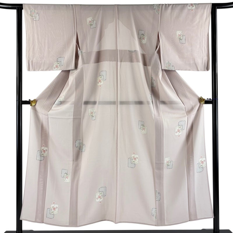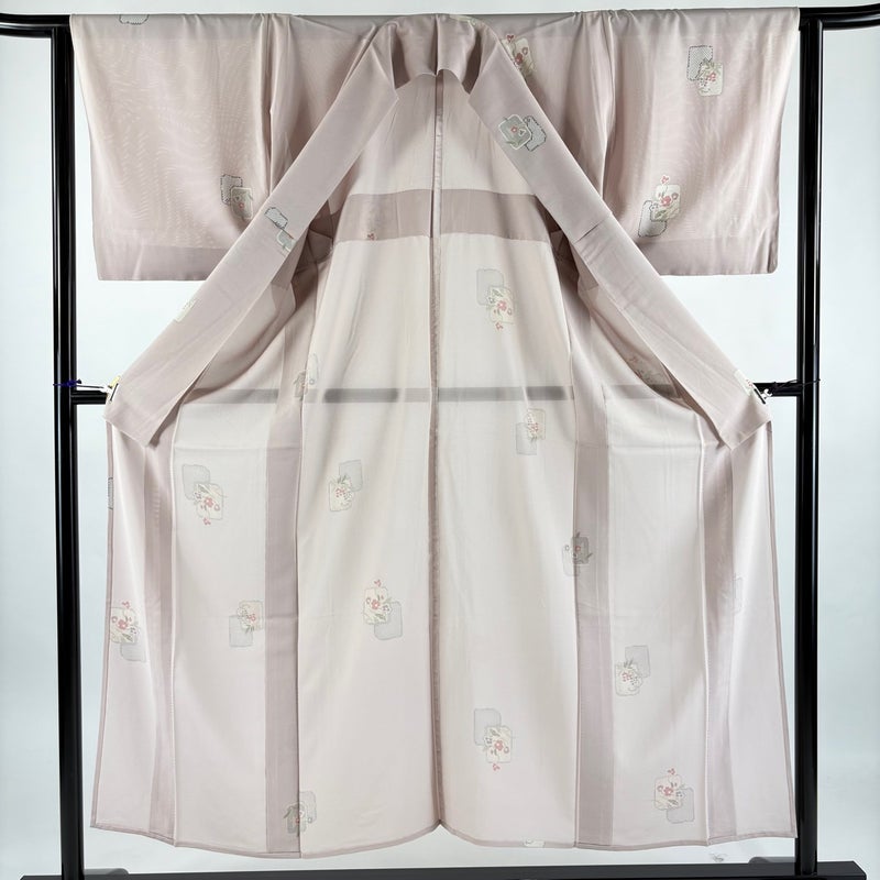 【着物ランク】秀品 【素材】正絹 【身丈】約152cm 【裄丈】約63.5cm 【袖丈】約47cm 【袖幅】約35.5cm 【前幅】約23.5cm 【後幅】約29cm 【サイズ】S 【着物仕立て】薄物 【着用時期】7~8月 【状態ランク】ランクA 【着物着用シーン】気軽なパーティー、観劇、食事会、正月、気軽なお茶会、街着