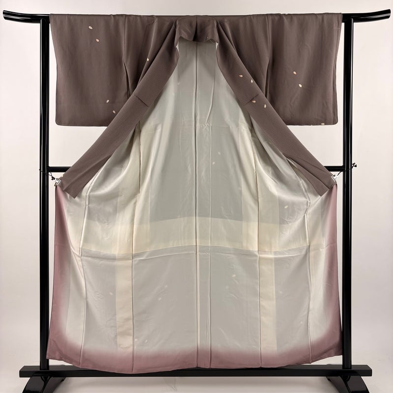 【着物ランク】秀品 【素材】正絹 【身丈】約157cm 【裄丈】約62cm 【袖丈】約48cm 【袖幅】約32cm 【前幅】約23cm 【後幅】約28cm 【サイズ】S 【着物仕立て】袷 【着用時期】10~5月 【状態ランク】ランクA 【着物着用シーン】気軽なパーティー、観劇、食事会、正月、気軽なお茶会、街着