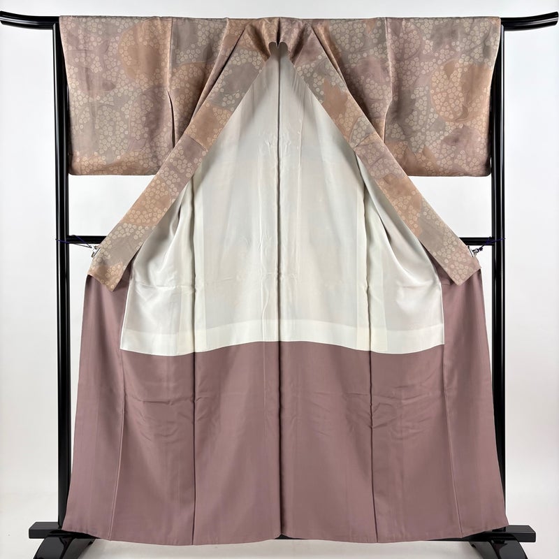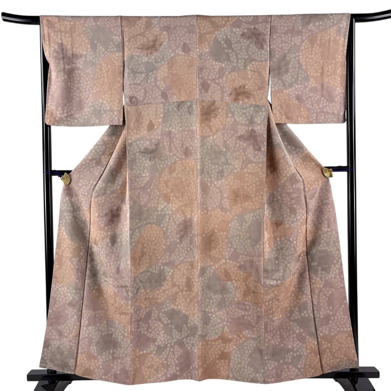 【着物ランク】秀品 【素材】正絹 【身丈】約160cm 【裄丈】約66cm 【袖丈】約48.5cm 【袖幅】約33.5cm 【前幅】約25cm 【後幅】約30.5cm 【サイズ】M 【着物仕立て】袷 【着用時期】10~5月 【状態ランク】ランクA 【着物着用シーン】気軽なパーティー、観劇、食事会、正月、気軽なお茶会、街着