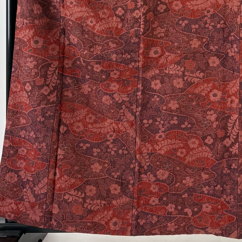 【着物ランク】秀品 【素材】正絹 【身丈】約161cm 【裄丈】約64cm 【袖丈】約49cm 【袖幅】約33cm 【前幅】約25cm 【後幅】約30cm 【サイズ】M 【着物仕立て】袷 【着用時期】10~5月 【状態ランク】ランクA 【着物着用シーン】気軽なパーティー、観劇、食事会、正月、気軽なお茶会、街着