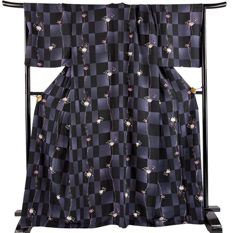【着物ランク】秀品 【素材】正絹 【身丈】約166.5cm 【裄丈】約69.5cm 【袖丈】約49cm 【袖幅】約35cm 【前幅】約30cm 【後幅】約34.5cm 【サイズ】L 【着物仕立て】袷 【着用時期】10~5月 【状態ランク】ランクA 【着物着用シーン】気軽なパーティー、観劇、食事会、正月、気軽なお茶会、街着