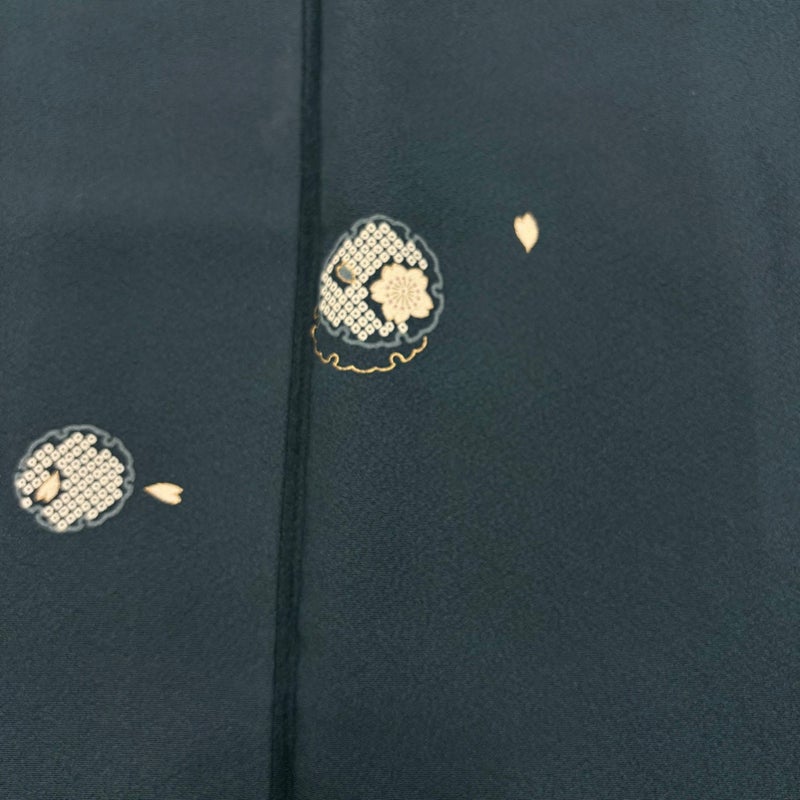 【小紋】 緑系 深緑 秀品 A 約150cm~約159cm 裄丈63cm-64cm (S)size 袖丈46cm以下 7990-9980 美品 二万以下