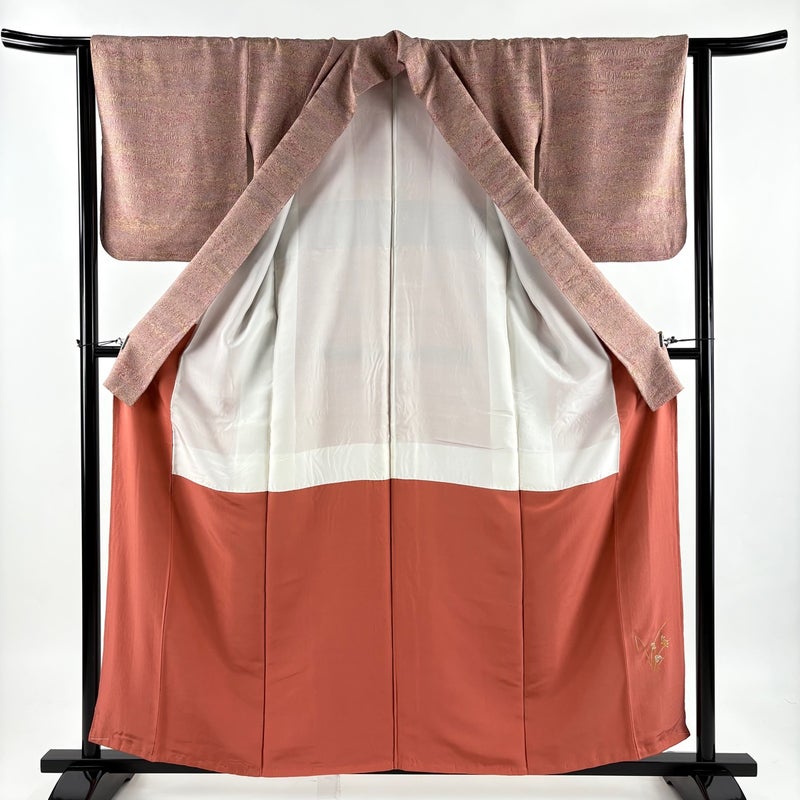 【着物ランク】秀品 【素材】正絹 【身丈】約158cm 【裄丈】約64cm 【袖丈】約48.5cm 【袖幅】約33.5cm 【前幅】約23cm 【後幅】約28.5cm 【サイズ】M 【着物仕立て】袷 【着用時期】10~5月 【状態ランク】ランクA 【着物着用シーン】気軽なパーティー、観劇、食事会、正月、気軽なお茶会、街着