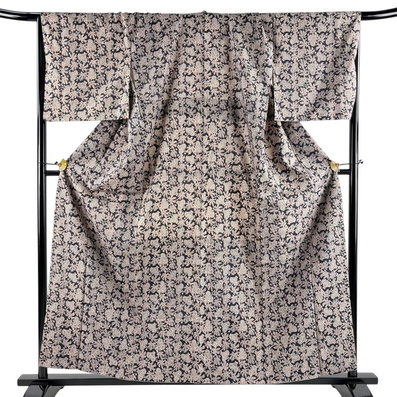 【小紋】 黒系 墨色 秀品 B 約150cm~約159cm 裄丈69cm以上 (L)size 袖丈47cm 4000-7980 二万以下