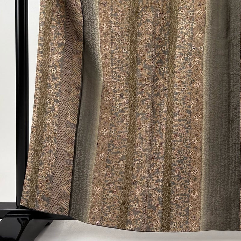 【着物ランク】逸品 【素材】正絹 【身丈】約162cm 【裄丈】約62cm 【袖丈】約48.5cm 【袖幅】約33cm 【前幅】約24cm 【後幅】約29cm 【サイズ】S 【着物仕立て】袷 【着用時期】10~5月 【状態ランク】ランクA 【着物着用シーン】気軽なパーティー、観劇、食事会、正月、気軽なお茶会、街着