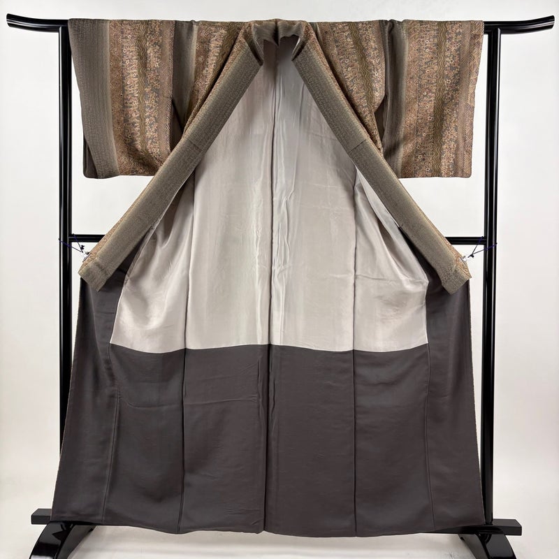 【小紋】 茶系 茶緑色 逸品 A 約160cm~約169cm 裄丈62cm以下 (S)size 袖丈48cm 30000- 美品 五万以下