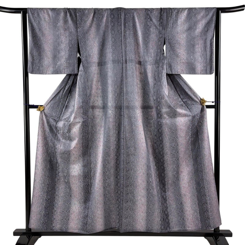 【小紋】 灰色系 灰紫 名品 B 約150cm~約159cm 裄丈66cm (M)size 袖丈47cm 9990-29990 五万以下
