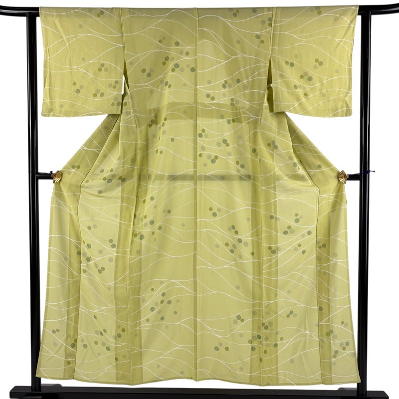 【着物ランク】名品 【素材】正絹 【身丈】約153.5cm 【裄丈】約62cm 【袖丈】約45.5cm 【袖幅】約32cm 【前幅】約24.5cm 【後幅】約28.5cm 【サイズ】S 【着物仕立て】薄物 【着用時期】7~8月 【状態ランク】ランクA 【着物着用シーン】気軽なパーティー、観劇、食事会、正月、気軽なお茶会、街着