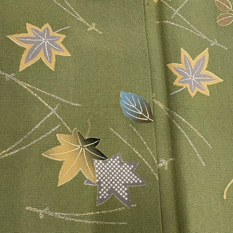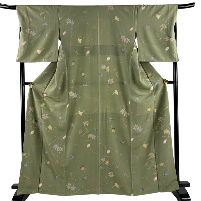 【小紋】 緑系 よもぎ色 秀品 B 約160cm~約169cm 裄丈67cm-68cm (L)size 袖丈50cm-60cm 4000-7980 二万以下