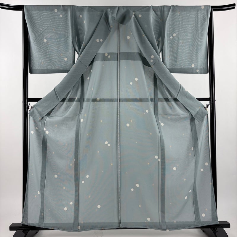 【着物ランク】秀品 【素材】正絹 【身丈】約161cm 【裄丈】約66cm 【袖丈】約49.5cm 【袖幅】約34cm 【前幅】約24cm 【後幅】約30cm 【サイズ】M 【着物仕立て】薄物 【着用時期】7~8月 【状態ランク】ランクC 【着物着用シーン】気軽なパーティー、観劇、食事会、正月、気軽なお茶会、街着