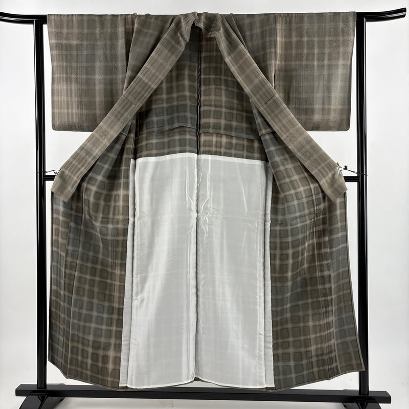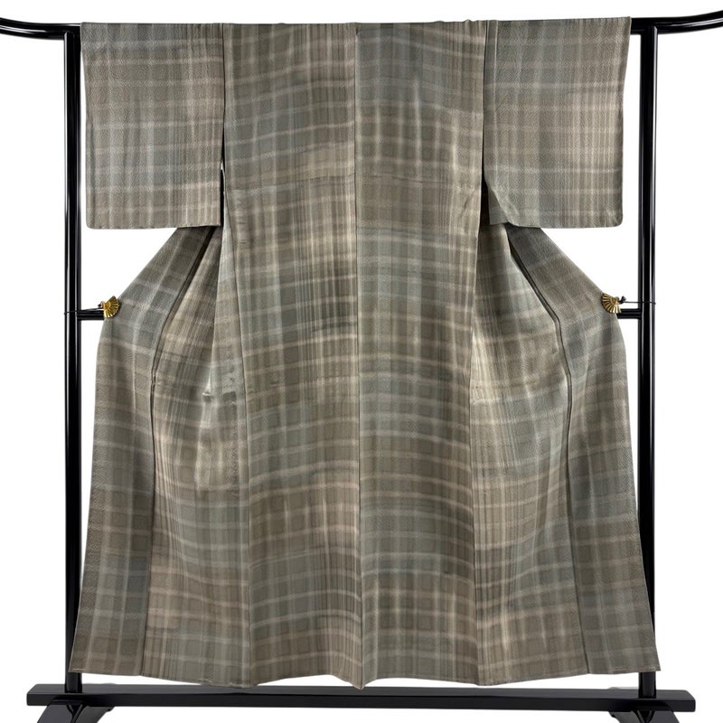 【小紋】 灰色系 灰緑 秀品 A 約150cm~約159cm 裄丈63cm-64cm (S)size 袖丈48cm 9990-29990 美品 二万以下