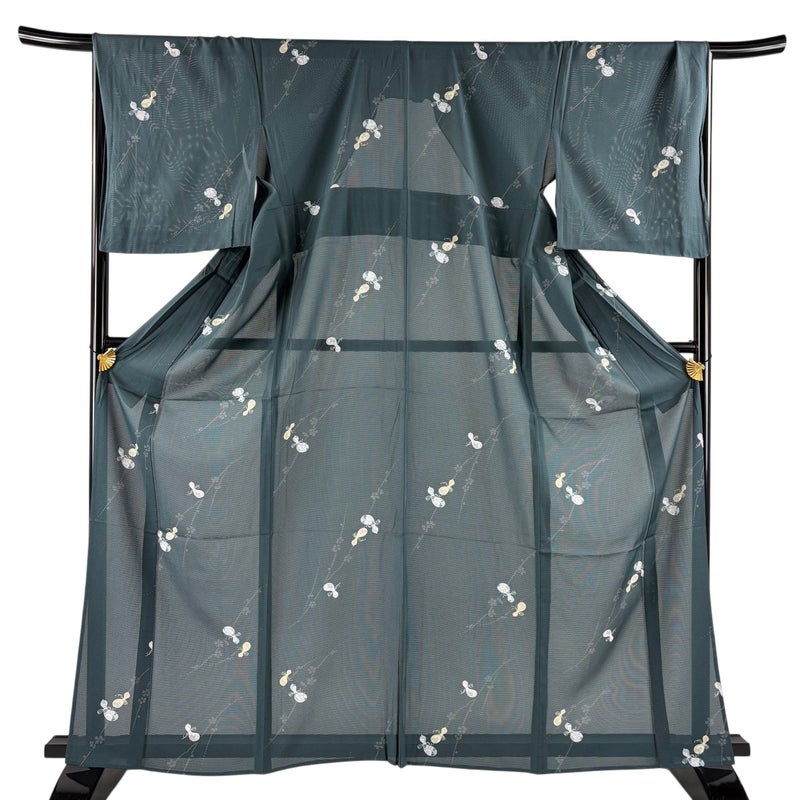 【着物ランク】秀品 【素材】正絹 【身丈】約164.5cm 【裄丈】約68cm 【袖丈】約49.5cm 【袖幅】約34.5cm 【前幅】約26.5cm 【後幅】約32cm 【サイズ】L 【着物仕立て】薄物 【着用時期】7~8月 【状態ランク】ランクB 【着物着用シーン】気軽なパーティー、観劇、食事会、正月、気軽なお茶会、街着