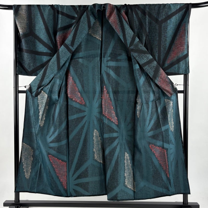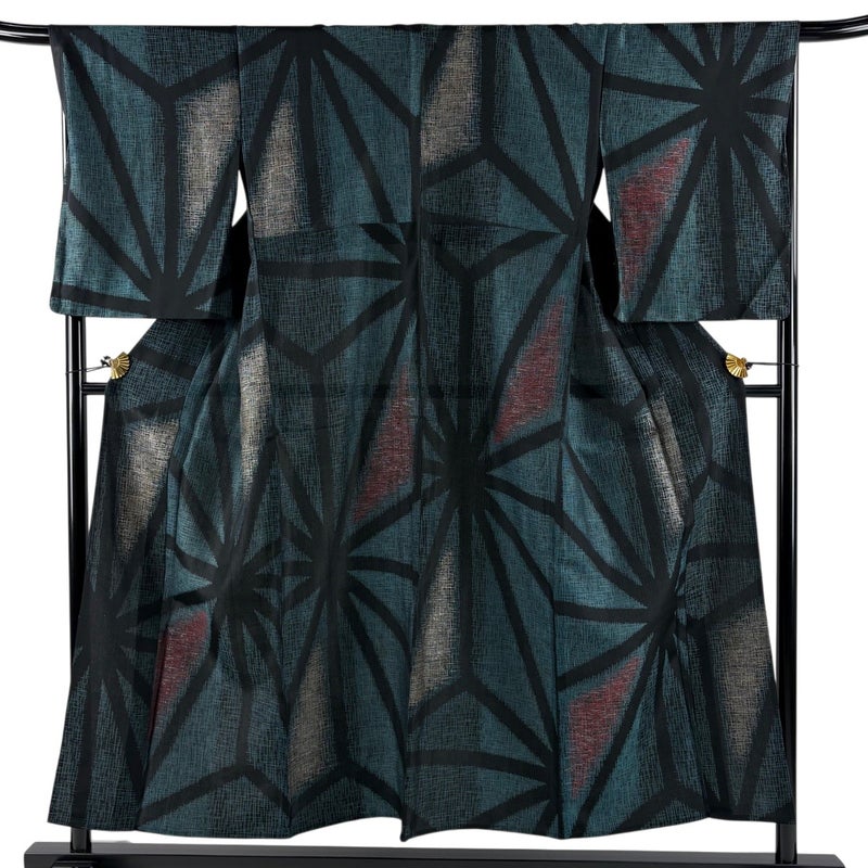【着物ランク】秀品 【素材】正絹 【身丈】約153cm 【裄丈】約68.5cm 【袖丈】約56cm 【袖幅】約34cm 【前幅】約28.5cm 【後幅】約33cm 【サイズ】L 【着物仕立て】単衣 【着用時期】6/9月 【状態ランク】ランクA 【着物着用シーン】気軽なパーティー、観劇、食事会、正月、気軽なお茶会、街着