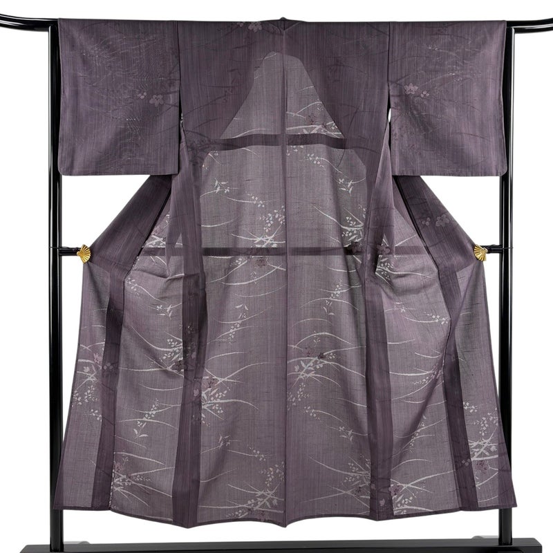 【着物ランク】秀品 【素材】正絹 【身丈】約150.5cm 【裄丈】約64cm 【袖丈】約48cm 【袖幅】約33.5cm 【前幅】約25cm 【後幅】約30.5cm 【サイズ】M 【着物仕立て】薄物 【着用時期】7~8月 【状態ランク】ランクB 【着物着用シーン】気軽なパーティー、観劇、食事会、正月、気軽なお茶会、街着