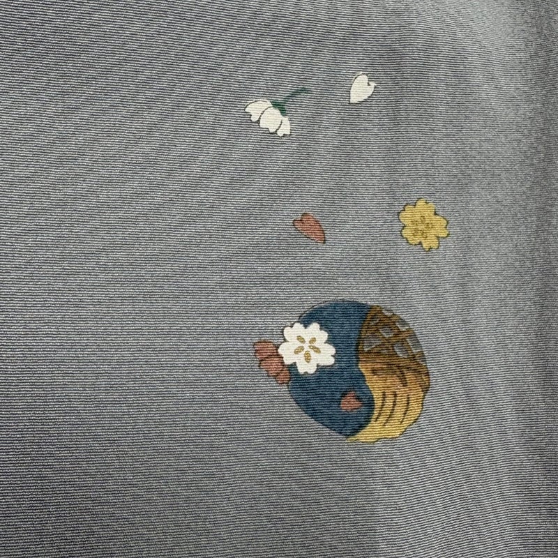 【着物ランク】秀品 【素材】正絹 【身丈】約167cm 【裄丈】約68cm 【袖丈】約49cm 【袖幅】約34.5cm 【前幅】約26cm 【後幅】約30cm 【サイズ】L 【着物仕立て】単衣 【着用時期】6/9月 【状態ランク】ランクB 【着物着用シーン】気軽なパーティー、観劇、食事会、正月、気軽なお茶会、街着
