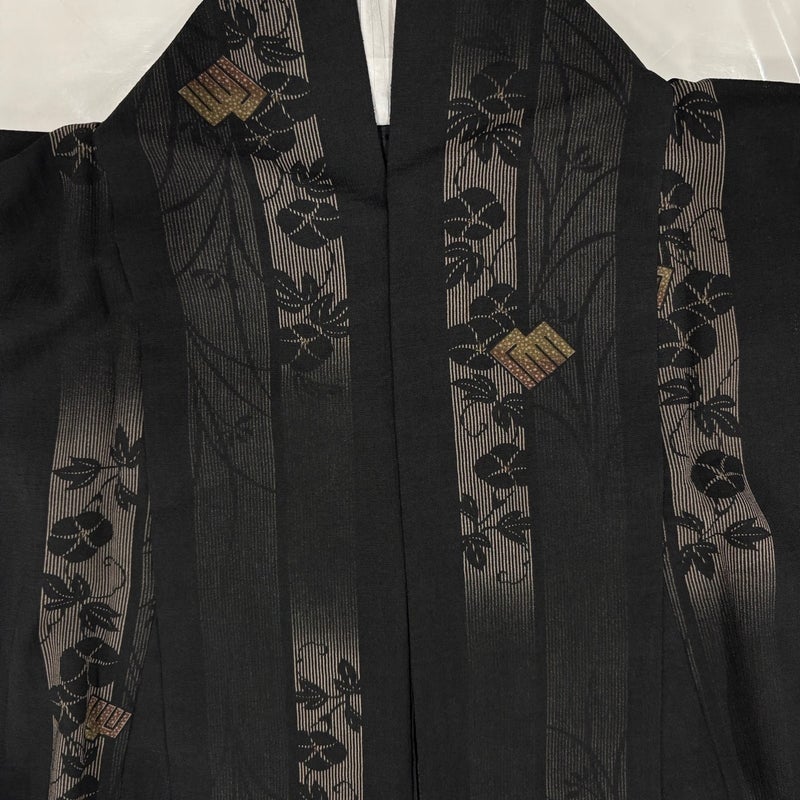【小紋】 黒系 黒 秀品 A 約160cm~約169cm 裄丈67cm-68cm (M)size 袖丈48cm 9990-29990 美品 二万以下