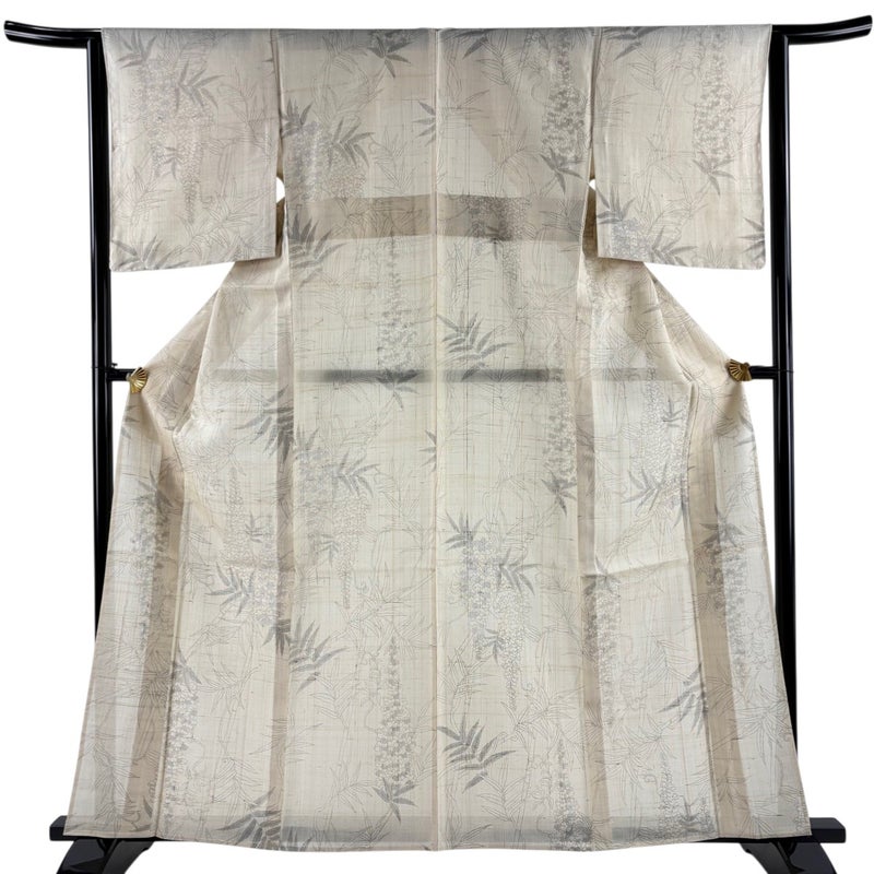 【着物ランク】秀品 【素材】正絹 【身丈】約160.5cm 【裄丈】約64cm 【袖丈】約49cm 【袖幅】約32cm 【前幅】約24cm 【後幅】約30cm 【サイズ】M 【着物仕立て】薄物 【着用時期】7~8月 【状態ランク】ランクA 【着物着用シーン】気軽なパーティー、観劇、食事会、正月、気軽なお茶会、街着