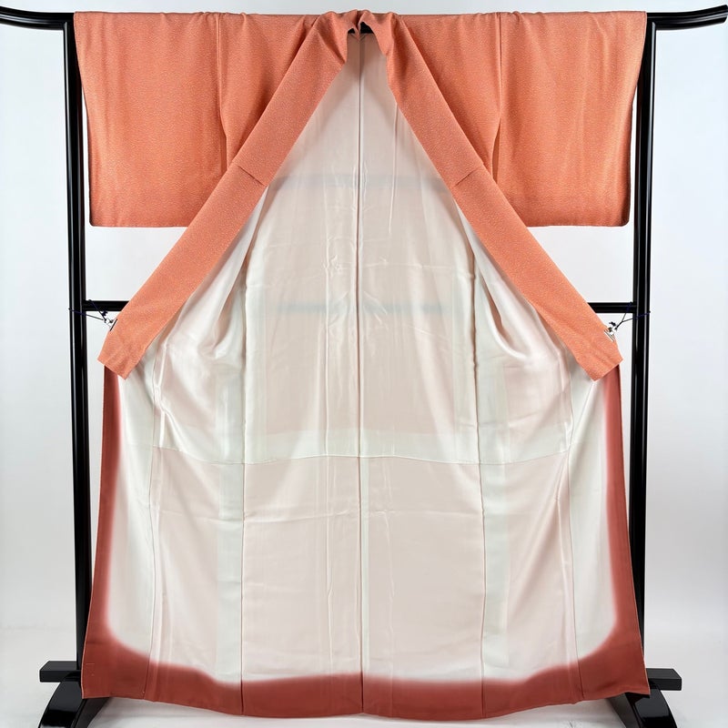 【着物ランク】優品 【素材】正絹 【身丈】約166cm 【裄丈】約64cm 【袖丈】約49cm 【袖幅】約34cm 【前幅】約24cm 【後幅】約29cm 【サイズ】M 【着物仕立て】袷 【着用時期】10~5月 【状態ランク】ランクA 【着物着用シーン】気軽なパーティー、観劇、食事会、正月、気軽なお茶会、街着