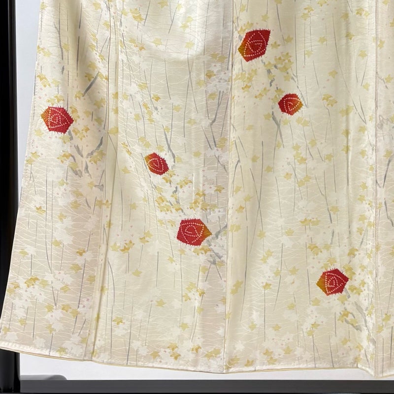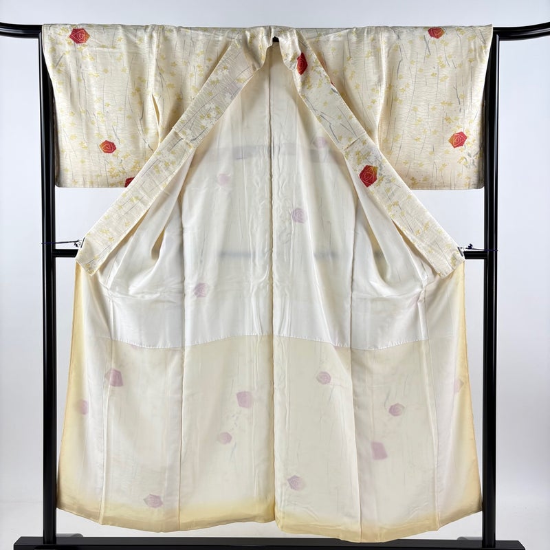 【着物ランク】優品 【素材】正絹 【身丈】約152cm 【裄丈】約66.5cm 【袖丈】約48cm 【袖幅】約33.5cm 【前幅】約24cm 【後幅】約30cm 【サイズ】M 【着物仕立て】袷 【着用時期】10~5月 【状態ランク】ランクA 【着物着用シーン】気軽なパーティー、観劇、食事会、正月、気軽なお茶会、街着