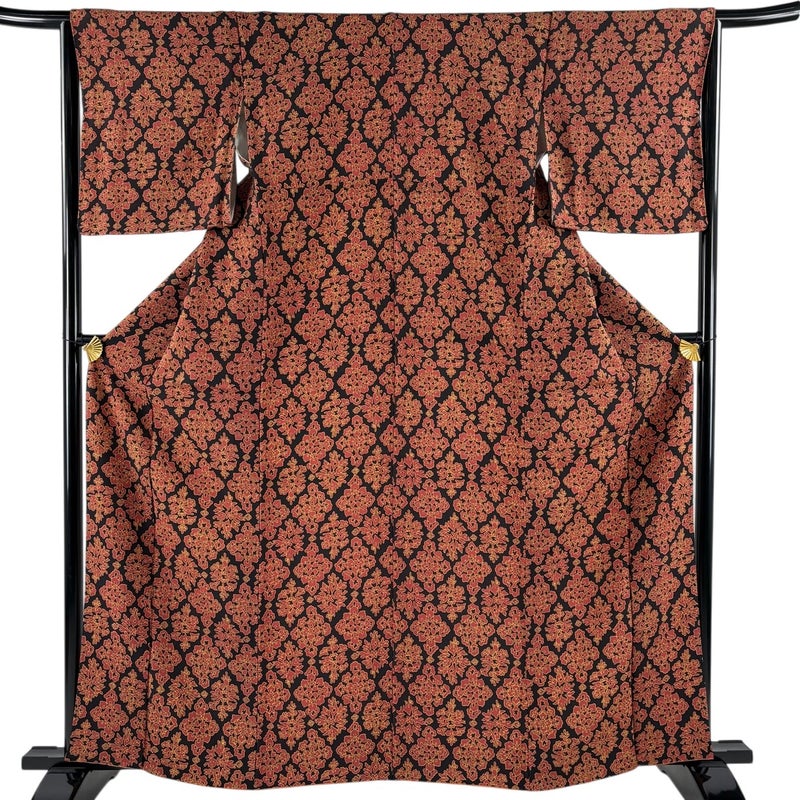 【小紋】 黒系 墨色 優品 A 約160cm~約169cm 裄丈63cm-64cm (M)size 袖丈47cm 4000-7980 美品 二万以下