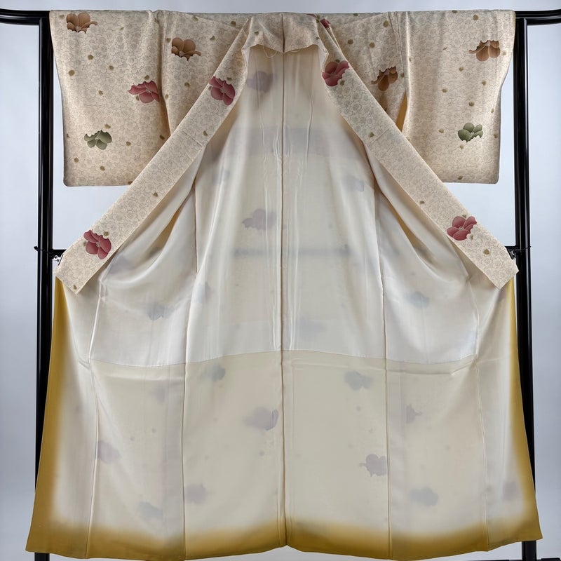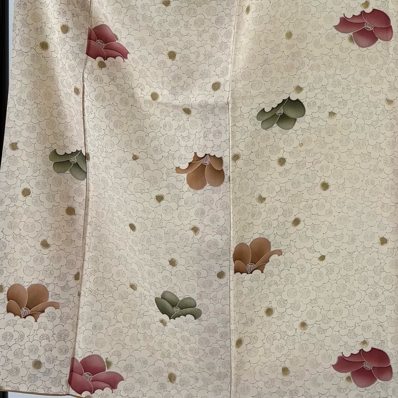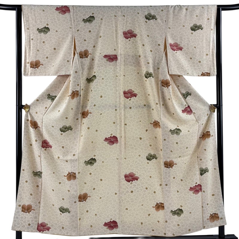 【着物ランク】優品 【素材】正絹 【身丈】約153cm 【裄丈】約63.5cm 【袖丈】約48.5cm 【袖幅】約32.5cm 【前幅】約26cm 【後幅】約28.5cm 【サイズ】S 【着物仕立て】袷 【着用時期】10~5月 【状態ランク】ランクB 【着物着用シーン】気軽なパーティー、観劇、食事会、正月、気軽なお茶会、街着