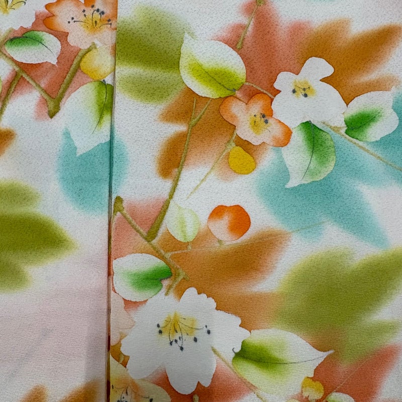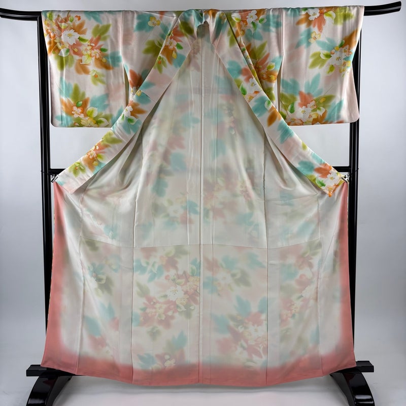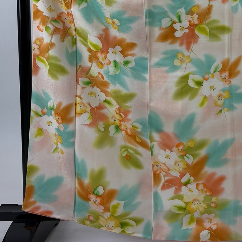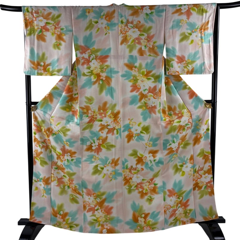 【着物ランク】優品 【素材】正絹 【身丈】約164cm 【裄丈】約65cm 【袖丈】約49cm 【袖幅】約33.5cm 【前幅】約25cm 【後幅】約30cm 【サイズ】M 【着物仕立て】袷 【着用時期】10~5月 【状態ランク】ランクB 【着物着用シーン】気軽なパーティー、観劇、食事会、正月、気軽なお茶会、街着