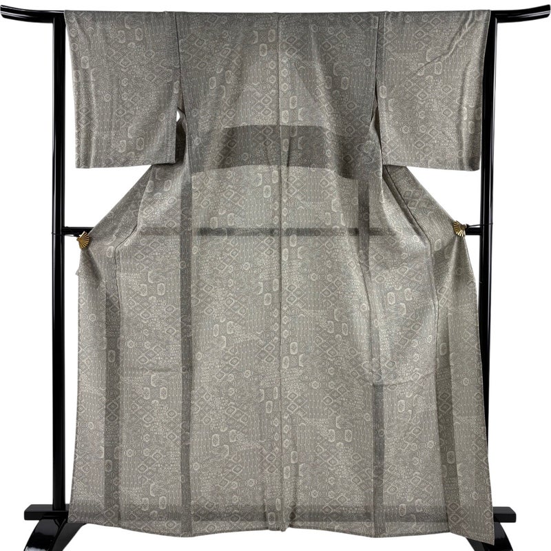 【小紋】 灰色系 灰茶 秀品 C 約160cm~約169cm 裄丈63cm-64cm (M)size 袖丈49cm 7990-9980 二万以下