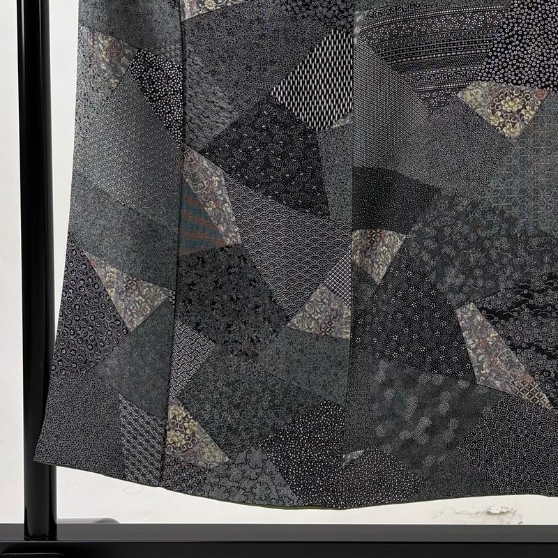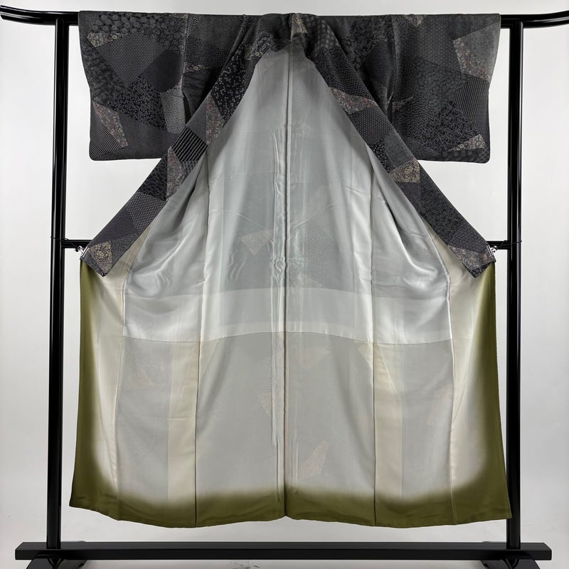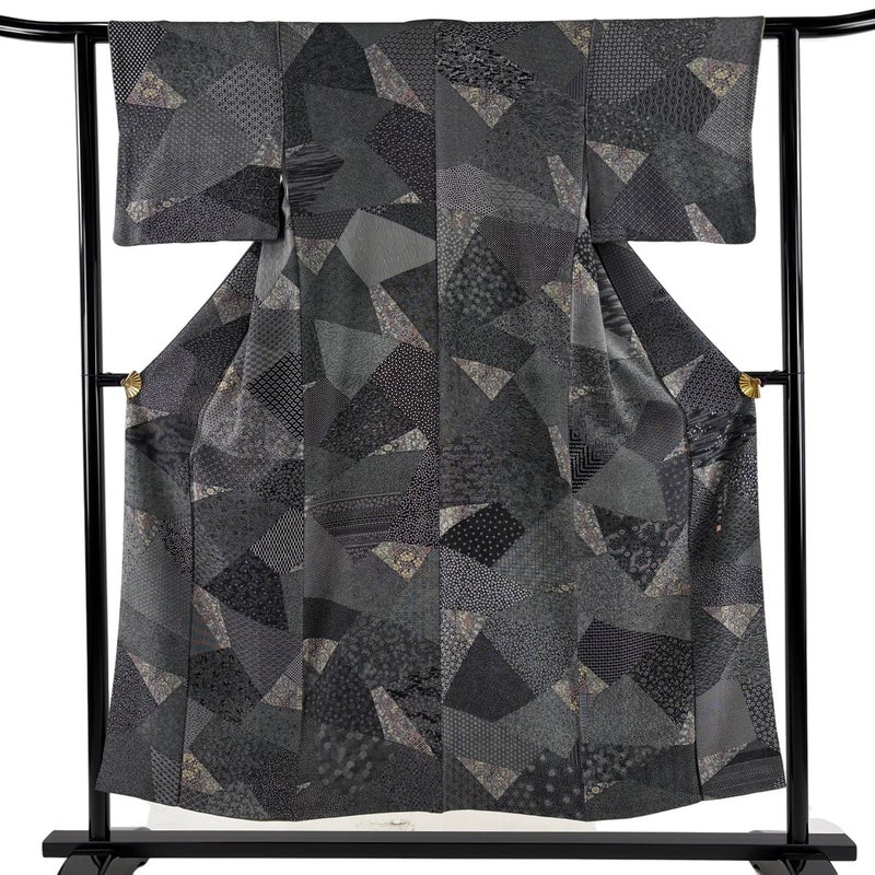 【小紋】 灰色系 黒灰 秀品 A 約150cm~約159cm 裄丈62cm以下 (S)size 袖丈46cm以下 7990-9980 美品 二万以下