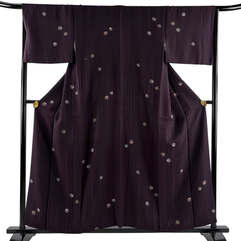 【小紋】 紫系 濃紫 秀品 C 約150cm~約159cm 裄丈66cm (M)size 袖丈46cm以下 4000-7980 二万以下