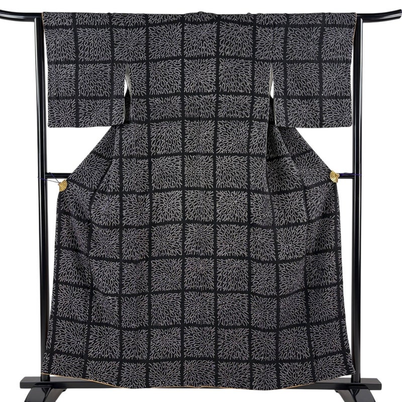 【小紋】 黒系 黒 秀品 A 約150cm~約159cm 裄丈63cm-64cm (M)size 袖丈47cm 7990-9980 美品 二万以下