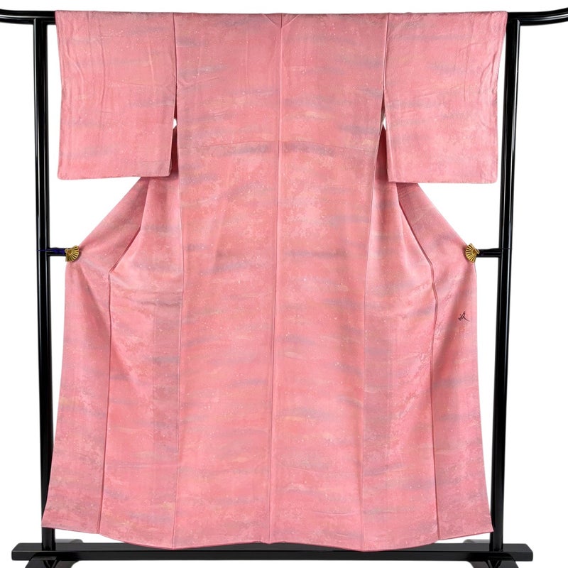 【着物ランク】秀品 【素材】正絹 【身丈】約154cm 【裄丈】約62cm 【袖丈】約48cm 【袖幅】約32cm 【前幅】約23cm 【後幅】約28.5cm 【サイズ】S 【着物仕立て】袷 【着用時期】10~5月 【状態ランク】ランクA 【着物着用シーン】気軽なパーティー、観劇、食事会、正月、気軽なお茶会、街着