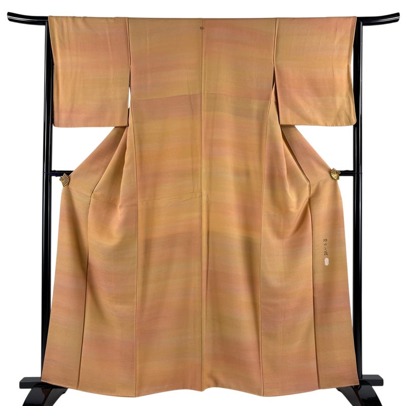 【着物ランク】秀品 【素材】正絹 【身丈】約160cm 【裄丈】約65cm 【袖丈】約47.5cm 【袖幅】約33.5cm 【前幅】約24.5cm 【後幅】約29.5cm 【サイズ】M 【着物仕立て】袷 【着用時期】10~5月 【状態ランク】ランクB 【作家名】押田正義 【着物着用シーン】気軽なパーティー、観劇、食事会、正月、気軽なお茶会、街着