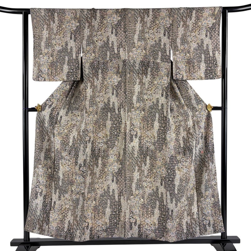 二代目更甚が手がけた作品でございます。 お洒落着として楽しめる小紋でございます。 お稽古や観劇、同窓会や友人との食事会など様々なシーンで楽しめます。 ※身丈・裄丈の縫込みの長さは測っておりません。 両袖口中に薄汚れ、下前の裾付近と後身頃の裾付近にシワがございます。 リユース品としては目立った染み傷なく、状態の良いお品でございます。 ※なお、厳しく商品の状態確認を行っておりますが、記載の汚れ以外にも見落とし箇所がある可能性がある旨ご了承いただけますと幸いです。 沢山の商品の中からご覧いただき誠にありがとうございます。