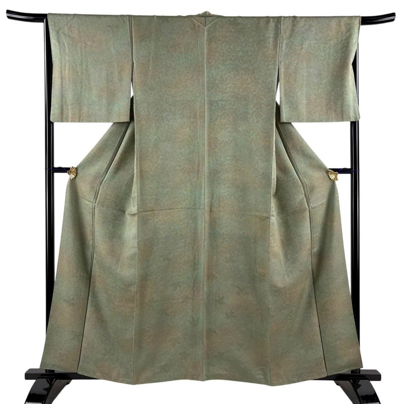 【着物ランク】秀品 【素材】正絹 【身丈】約158cm 【裄丈】約67cm 【袖丈】約47cm 【袖幅】約34cm 【前幅】約25cm 【後幅】約30cm 【サイズ】M 【着物仕立て】袷 【着用時期】10~5月 【状態ランク】ランクA 【着物着用シーン】気軽なパーティー、観劇、食事会、正月、気軽なお茶会、街着