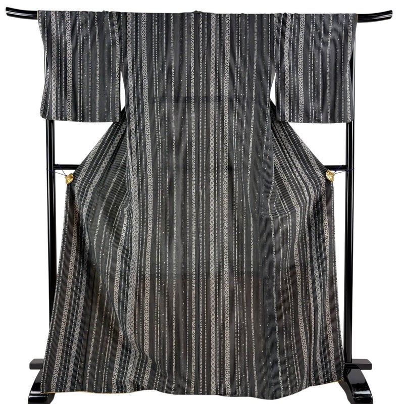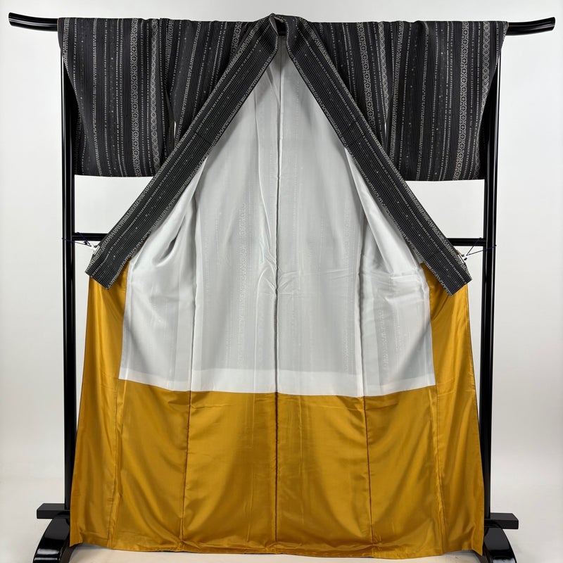 【小紋】 黒系 墨色 秀品 A 約170cm~約179cm 裄丈67cm-68cm (L)size 袖丈48cm 7990-9980 美品 二万以下