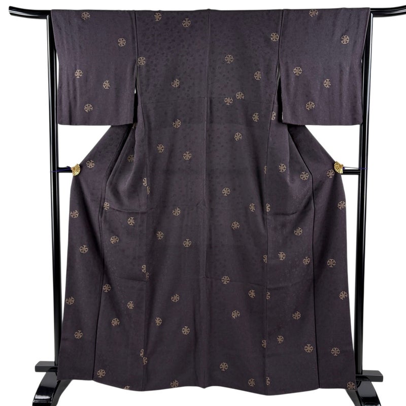 お洒落着として楽しめる小紋でございます。 お稽古や観劇、同窓会や友人との食事会など様々なシーンで楽しめます。 ※身丈・裄丈の縫込みの長さは測っておりません。 表地所々にヤケ、両袖口中に汚れ、表地所々に金彩の剥がれがございます。 裏地所々にシワがございます。 リユース品としては良い状態で、まだまだご活用頂けると思われます。 ※なお、厳しく商品の状態確認を行っておりますが、記載の汚れ以外にも見落とし箇所がある可能性がある旨ご了承いただけますと幸いです。 沢山の商品の中からご覧いただき誠にありがとうございます。