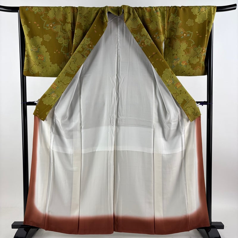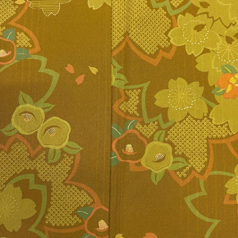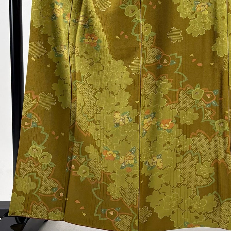 【小紋】 茶系 茶緑色 秀品 A 約160cm~約169cm 裄丈67cm-68cm (L)size 袖丈49cm 7990-9980 美品 二万以下
