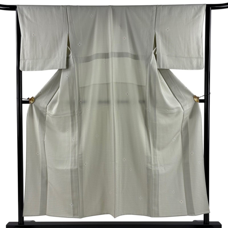 【着物ランク】秀品 【素材】正絹 【身丈】約152cm 【裄丈】約65.5cm 【袖丈】約47cm 【袖幅】約33cm 【前幅】約25cm 【後幅】約30.5cm 【サイズ】M 【着物仕立て】単衣 【着用時期】6/9月 【状態ランク】ランクB 【着物着用シーン】気軽なパーティー、観劇、食事会、正月、気軽なお茶会、街着