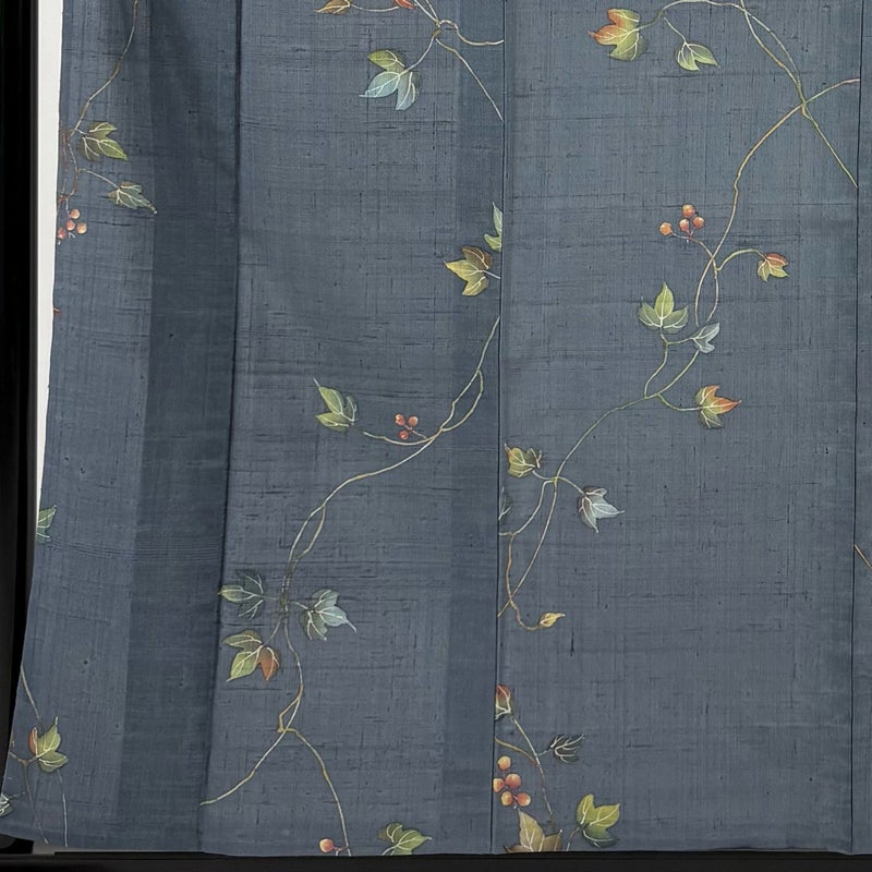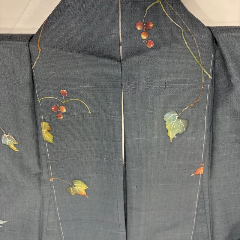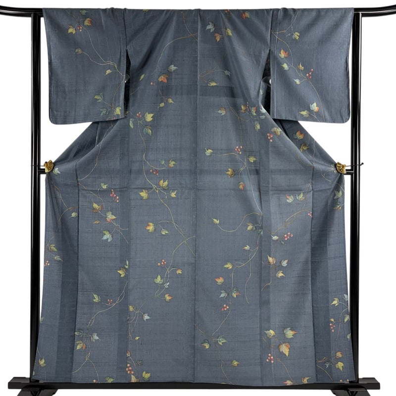 【着物ランク】秀品 【素材】正絹 【身丈】約160cm 【裄丈】約64cm 【袖丈】約49cm 【袖幅】約32.5cm 【前幅】約22cm 【後幅】約28cm 【サイズ】M 【着物仕立て】単衣 【着用時期】6/9月 【状態ランク】ランクB 【着物着用シーン】気軽なパーティー、観劇、食事会、正月、気軽なお茶会、街着