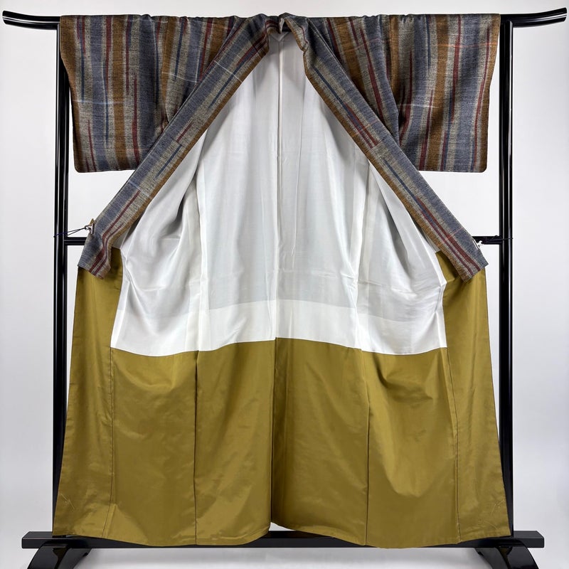 【着物ランク】秀品 【素材】正絹 【身丈】約159cm 【裄丈】約64cm 【袖丈】約47cm 【袖幅】約32.5cm 【前幅】約28cm 【後幅】約31cm 【サイズ】M 【着物仕立て】袷 【着用時期】10~5月 【状態ランク】ランクB 【着物着用シーン】気軽なパーティー、観劇、食事会、正月、気軽なお茶会、街着