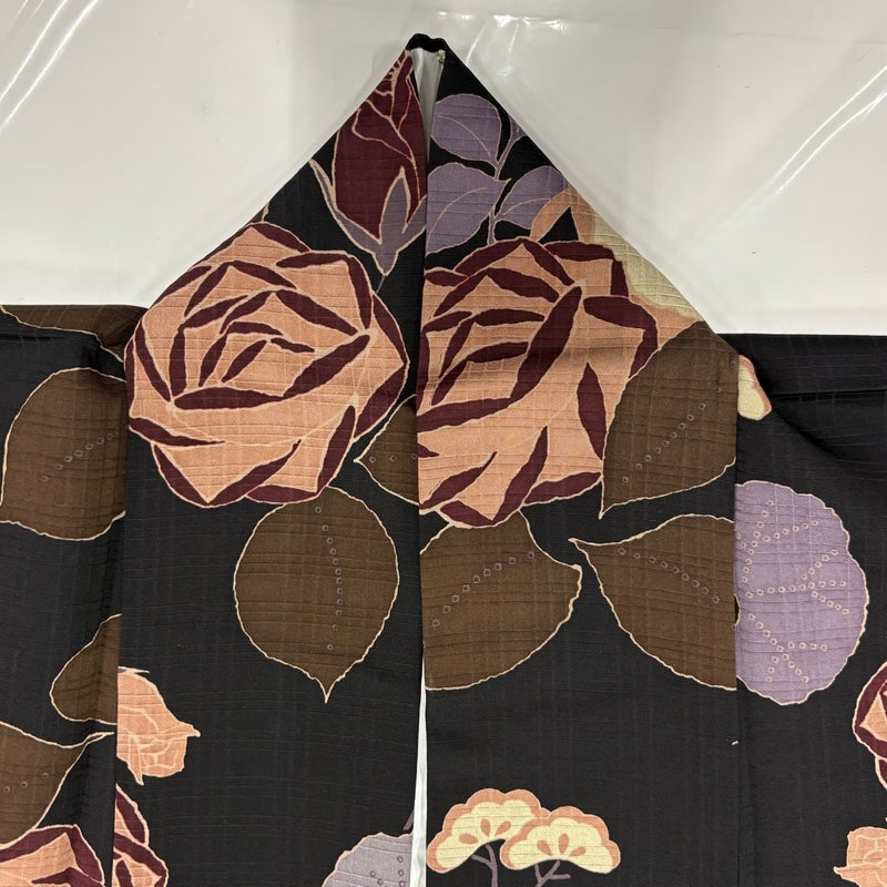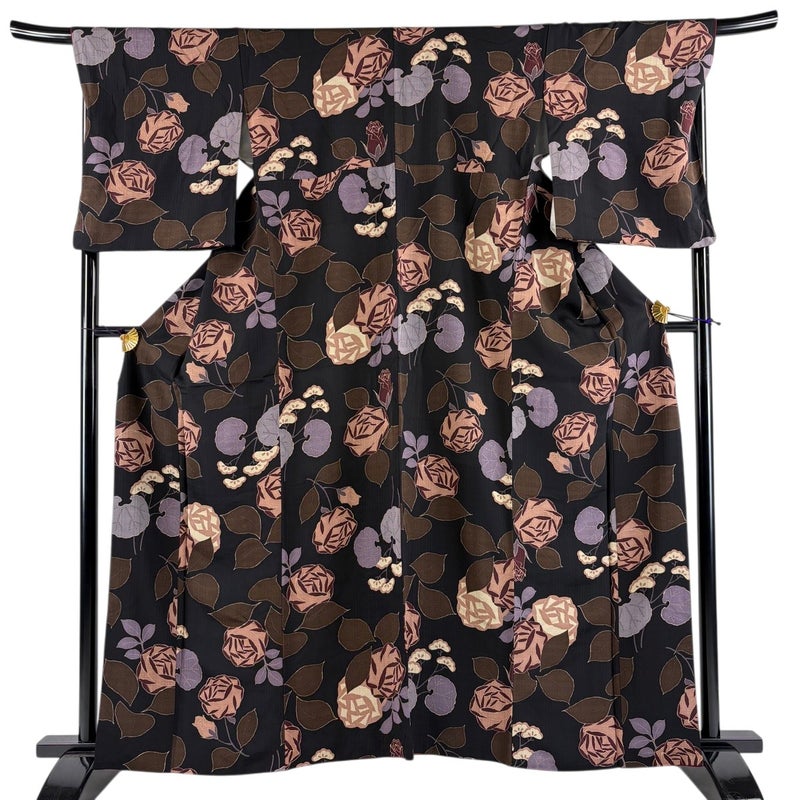【小紋】 黒系 黒 秀品 A 約160cm~約169cm 裄丈69cm以上 (L)size 袖丈50cm-60cm 7990-9980 美品 二万以下