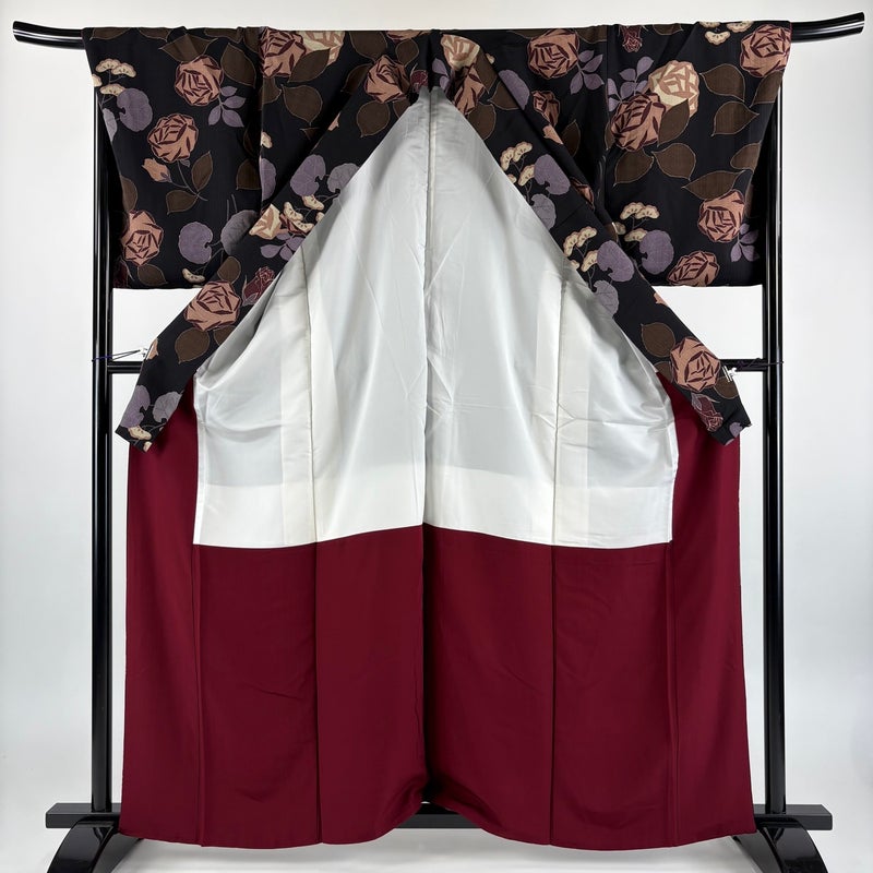 【着物ランク】秀品 【素材】正絹 【身丈】約161.5cm 【裄丈】約69cm 【袖丈】約52.5cm 【袖幅】約36cm 【前幅】約24cm 【後幅】約30cm 【サイズ】L 【着物仕立て】袷 【着用時期】10~5月 【状態ランク】ランクA 【着物着用シーン】気軽なパーティー、観劇、食事会、正月、気軽なお茶会、街着