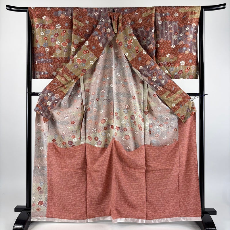 【小紋】 赤系 赤茶 秀品 A 約160cm~約169cm 裄丈66cm (M)size 袖丈50cm-60cm 7990-9980 美品 二万以下